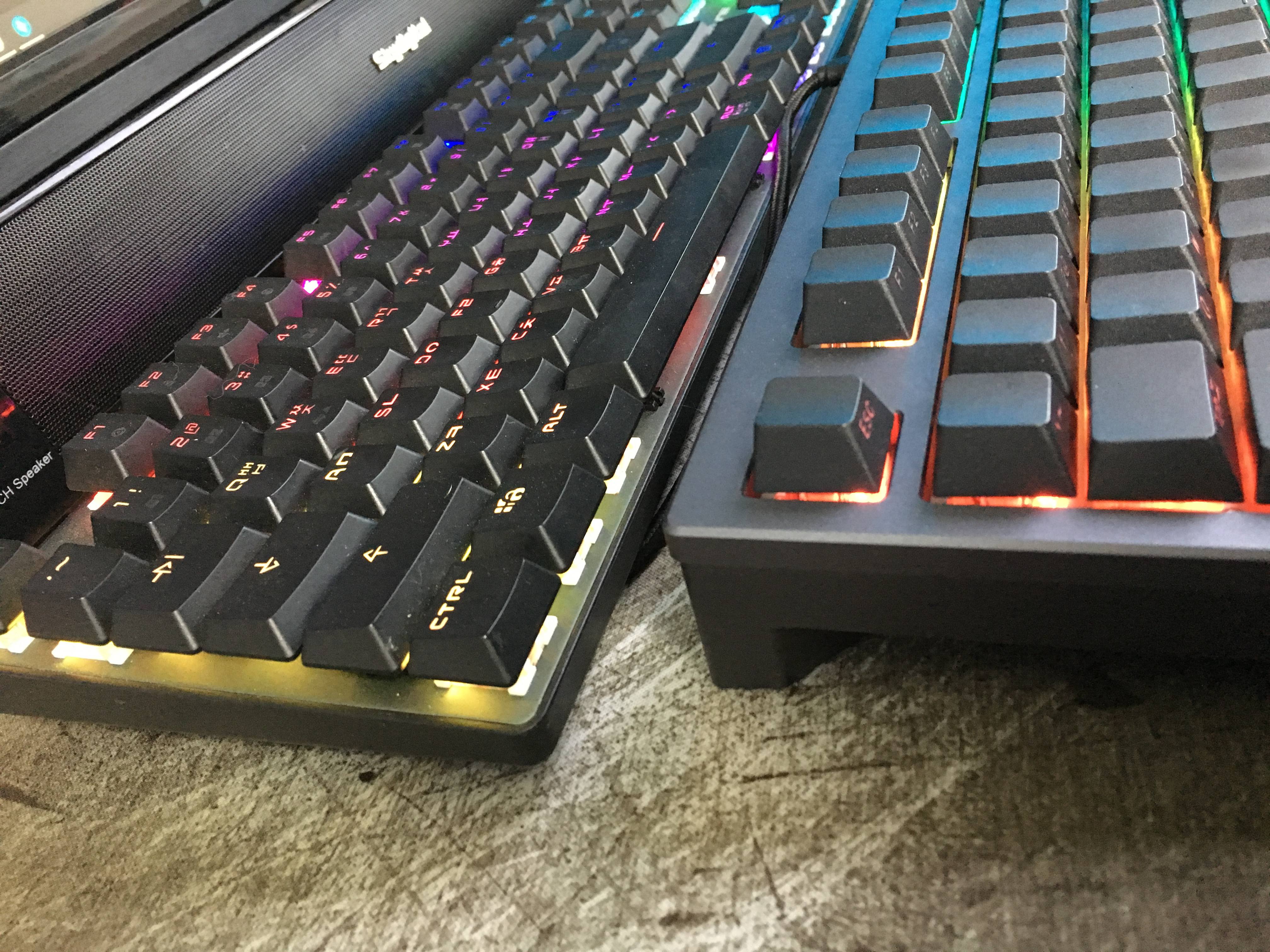 다 닦고 나서 스위치, 키캡 조립 후에 전에 쓰던 키보드와 비교해봤습니다.